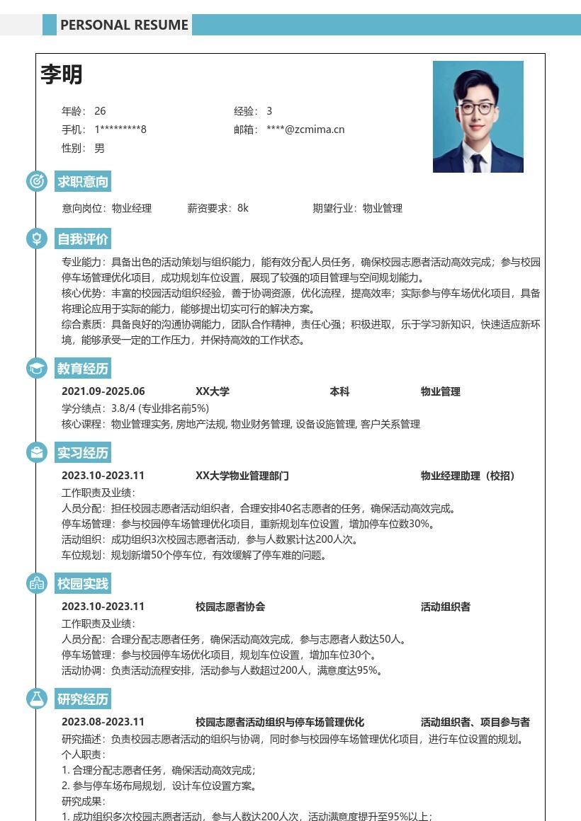 - 同时,要注明求职意向为物业经理校招岗位,让招聘者一目了然你的求职方向。