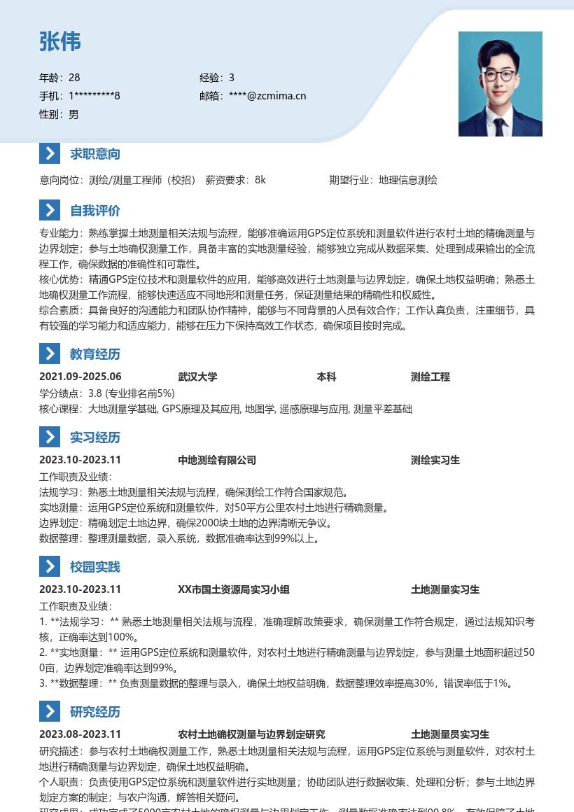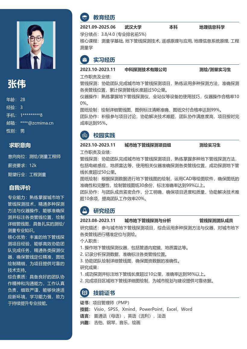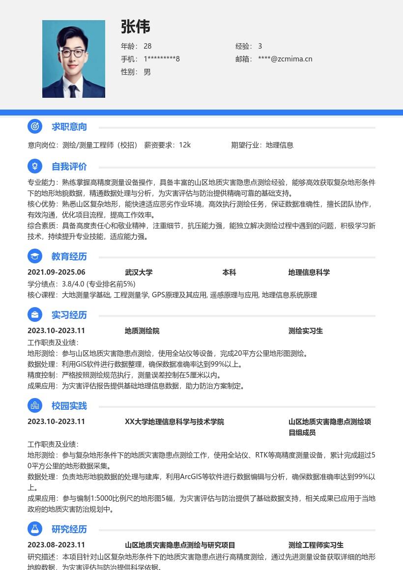 职场密码版权所有,购买后仅限自己使用,严禁转载、转售!: 职场密码-在线简历制作简历模板职场课程简历优化 » 20多套测绘_测量(校招)岗位简历模板合集word版