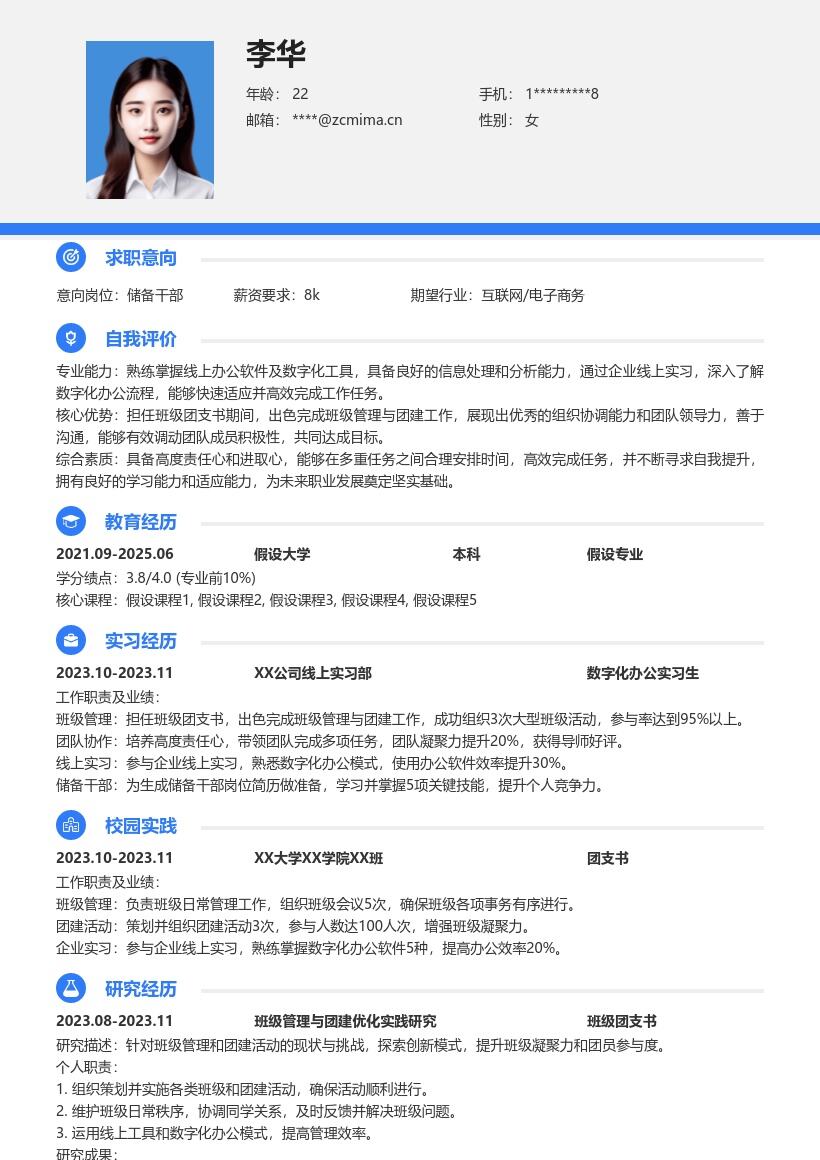 职场密码版权所有,购买后仅限自己使用,严禁转载、转售!: 职场密码-在线简历制作简历模板职场课程简历优化 » 20多套储备干部(校招)岗位简历模板合集word版